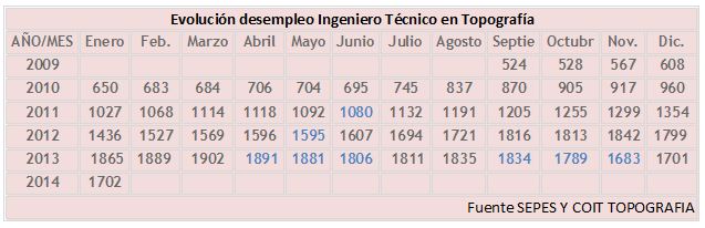A finales de Septiembre publiqué un artículo sobre el desempleo en la Topografía. Tenía idea estos días de divulgar otro gráfico con una nueva evolución de estos últimos meses, pensando en que iban a ser datos positivos, «los iba a pintar en azul» y más después de lo que os comentaré más adelante.