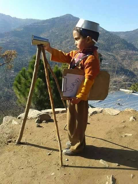 Hoy traigo a la sección, una imagen que hace unas semanas ha tenido mucha visibilidad. Como se puede ver al niño, está jugando a ser topógrafo, no deja de tener su gracia, por el instrumental que se ha fabricado.