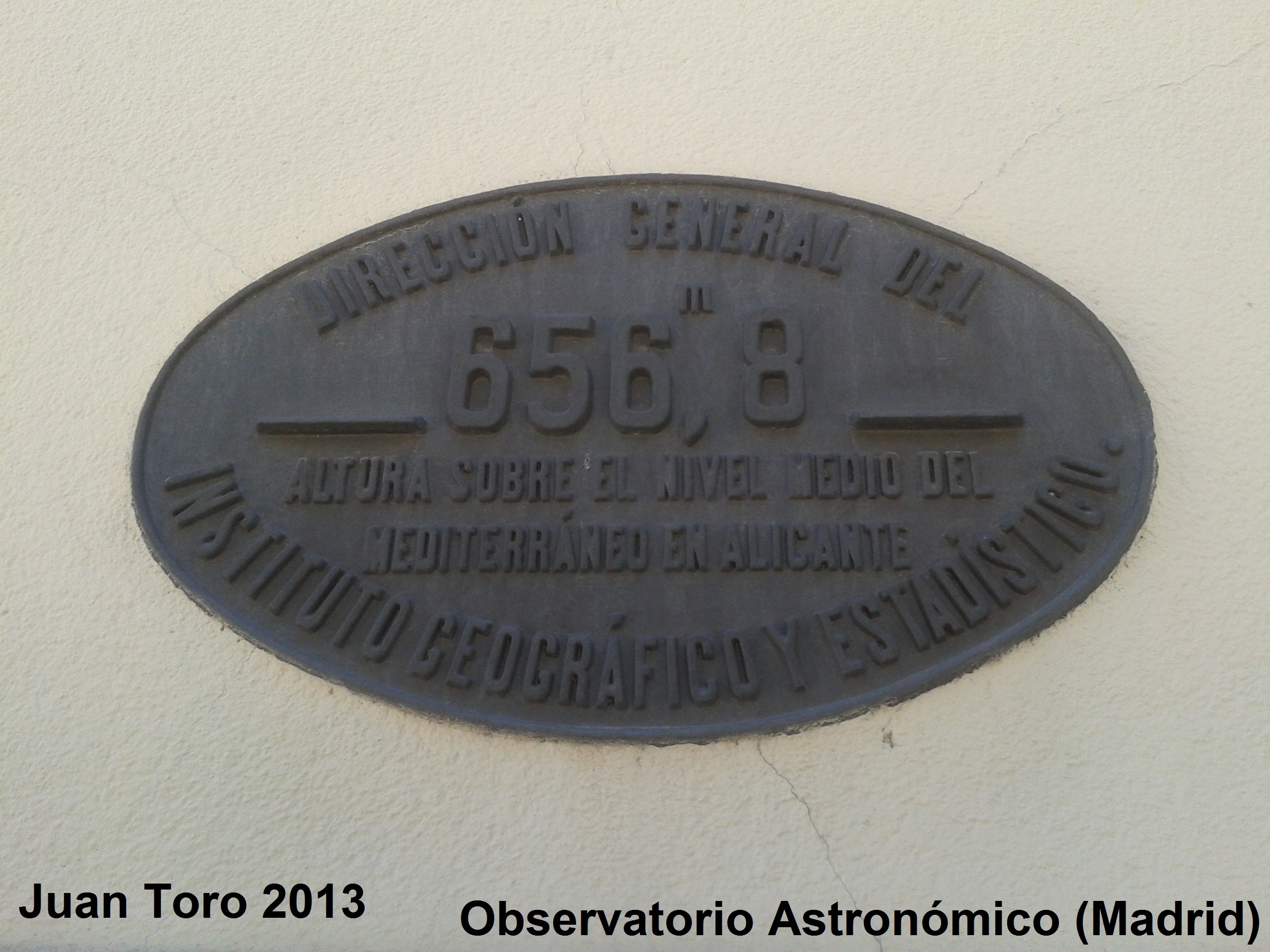 Tal y como decía , la que sirvió para finalizar el primer itinerario, se encuentra en el Observatorio Astronómico, cerca del Parque del Retiro, en la fachada del Edificio de Villanueva donde se indican los casí 657 metros.