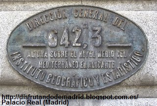 Bueno, sigamos este recorrido un poco caótico que estoy describiendo por las calles de Madrid y vayámos al Palacio Real, en sus muros principales que dan a la Calle Bailen tenemos otra placa con sus 642,3 metros.
