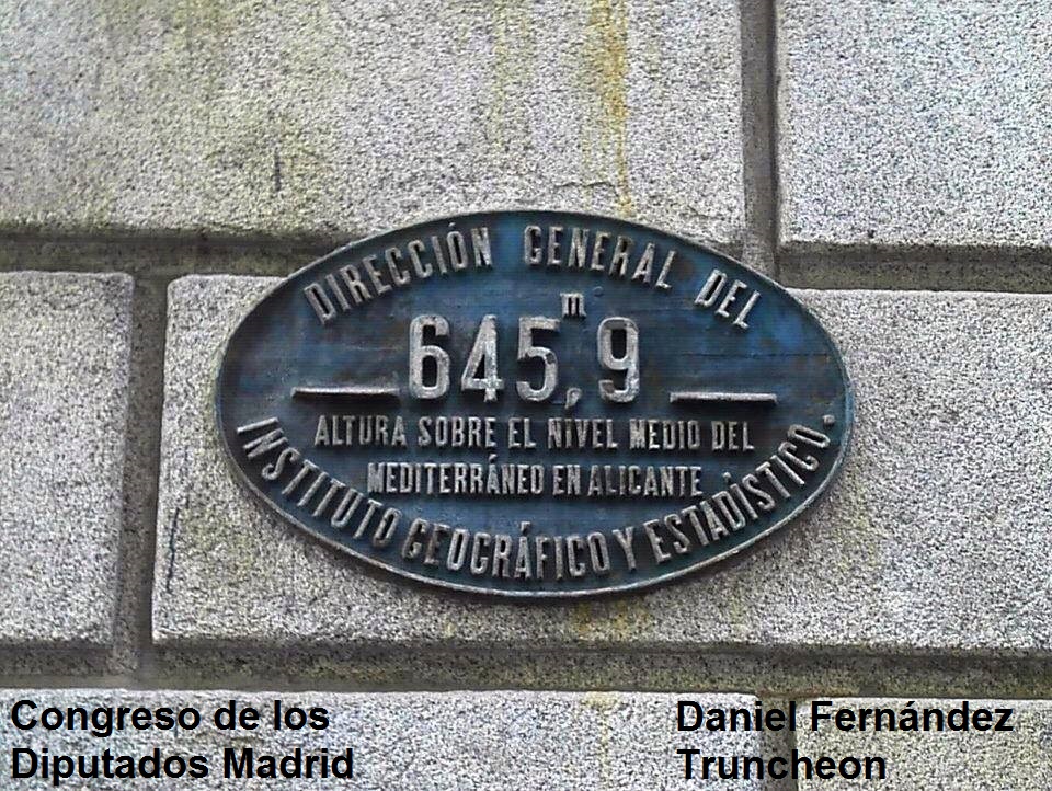 Sigamos la Carrera de San Jerónimo y paremos en el Congreso de los Diputados, allí hay otra placa que nos dice que la altitud del lugar es de 645,9 metros.