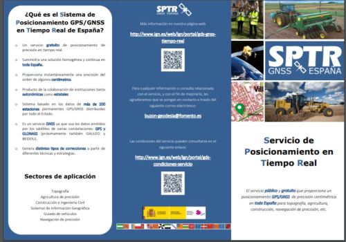 Una buena idea que ha tenido el IGN ha sido confeccionar un tríptico en el que con lenguaje mundano explica las cualidades del servicio, porque no solo lo utilizamos los geomáticos, sino que tambien lo usan los agricultores, operadores de maquinaria pública y cualquier otro profesional que necesite precisión centimétrica en sus trabajos con un receptor GNSS.
