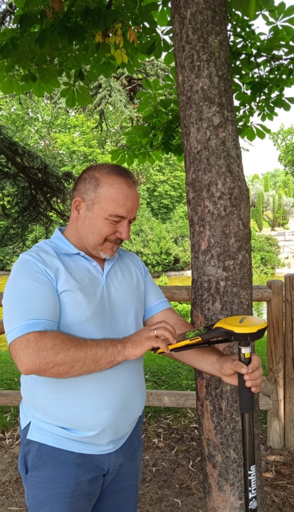 Foto propia.- Medición centimétrica en el parque de El Retiro de Madrid con Trimble TDC650 para comprobar su comportamiento en entornos arbolados de gran densidad