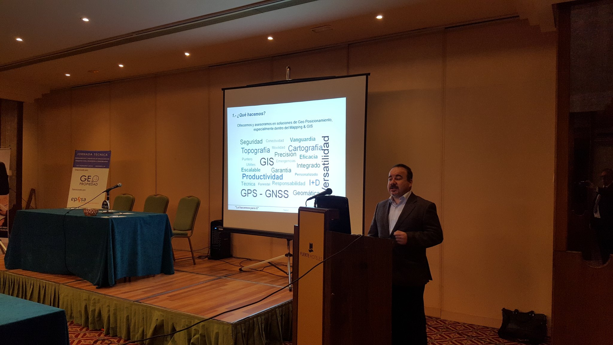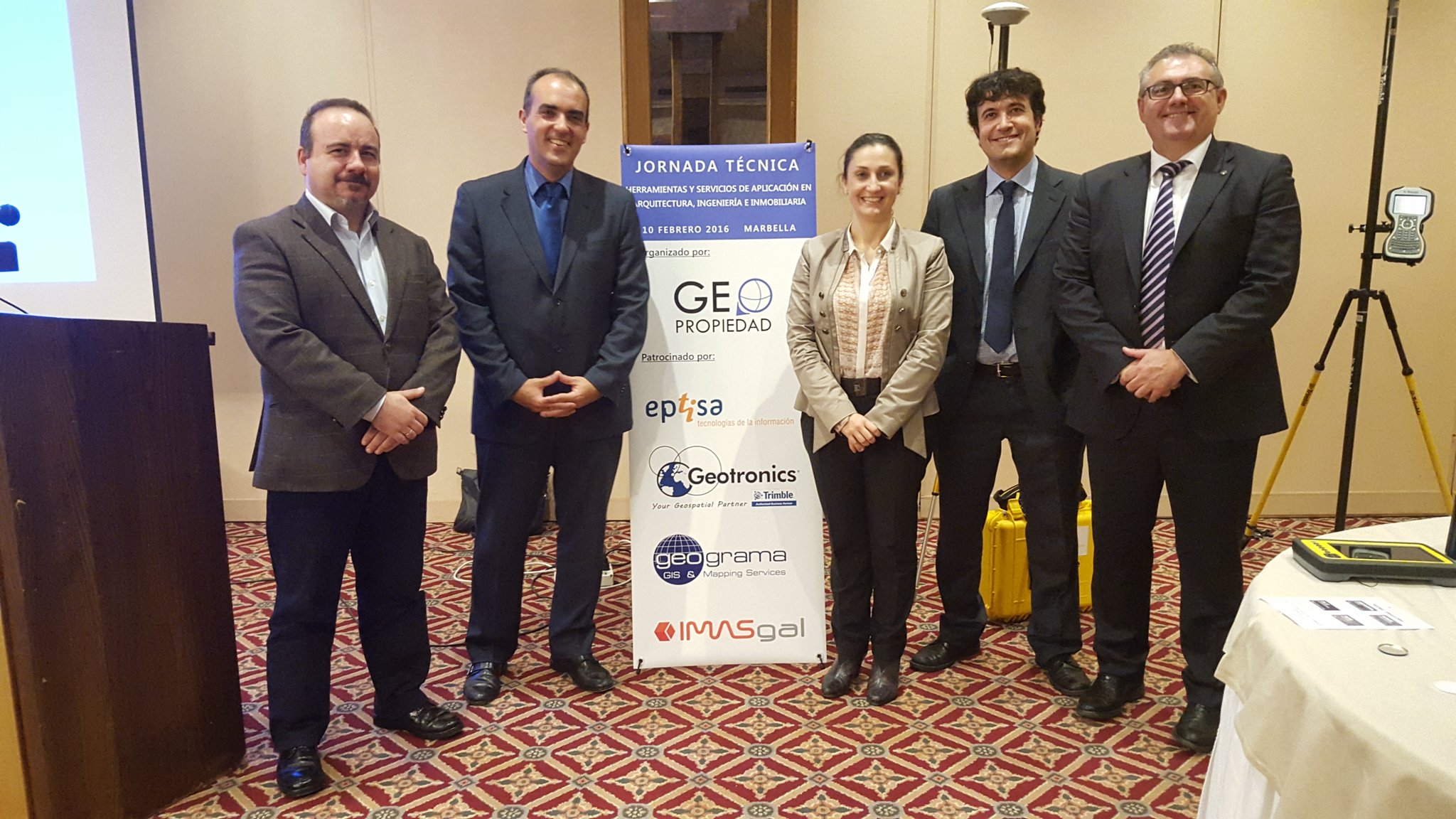 De derecha a izquierda. Pedro Ortiz (Geopropiedad), Vicente de la Cruz (Geograma), Inma Martin y Arturo Zazo (Geotronics) y yo en nombre de Eptisa Tecnologías de la información.